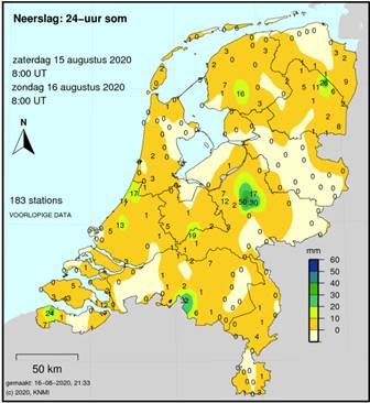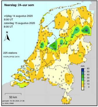 Hieronder een overzicht van het neerslag van 13,14 en 15 augustus.