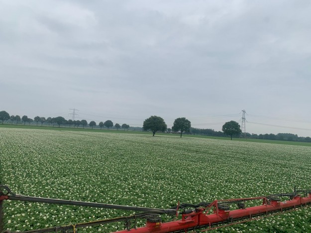 Iets ten noorden op het Gewastourperceel in Hellevoetsuis (Zuid-Holland) is het te nat om te spuiten, meldt aardappelteler Kees Trouw: "Het heeft hier veel geregend maar ik hoef pas vrijdag en zaterdag weer te spuiten gelukkig. Hier in de omgeving is ook nog geen phytophthora gevonden, maar dat wil ik ook graag zo houden. Afgelopen ronde heb ik 0,6 liter Revus met 2 liter Borium gespoten en komende dagen ga ik Zorvec gebruiken op de aardappelpercelen."
