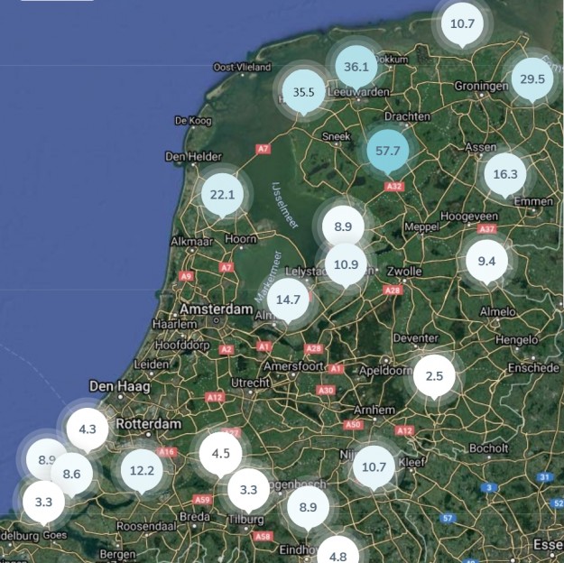 Ook de percelen fritesaardappelen en zaaiuien die meedoen aan de Boerenbusiness Gewastour hielden het niet droog. Het Gewastourperceel in Oldeholtwolde (Friesland) kreeg 57.7 millimeter. Al eerder deze maand ontvingen meerdere regio's al een flinke neerslagsom. Het perceel in Oldeholtwolde (Friesland) staat met de hevige buien van zondag deze maand al op 123 millimeter.