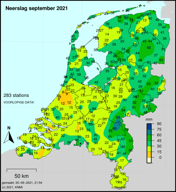 Bijna ging de maand september de boeken in als één van de droogste ooit. Op veel plekken viel minder dan 10 millimeter neerslag, anderen ontvingen midden september een enkele bui. In de laatste dagen van de maand vielen er nog tientallen millimeters bij.