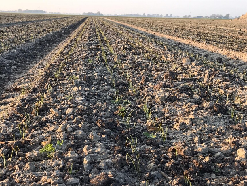 Door de korstvorming zijn er dit seizoen behoorlijk wat kiempjes gesneuveld en er zijn er nog steeds zoekende. Verschillende telers in Nederland hebben daarop geanticipeerd door te beregenen of het machinaal breken van de korst. Soms met veel succes, andere keren viel het tegen.