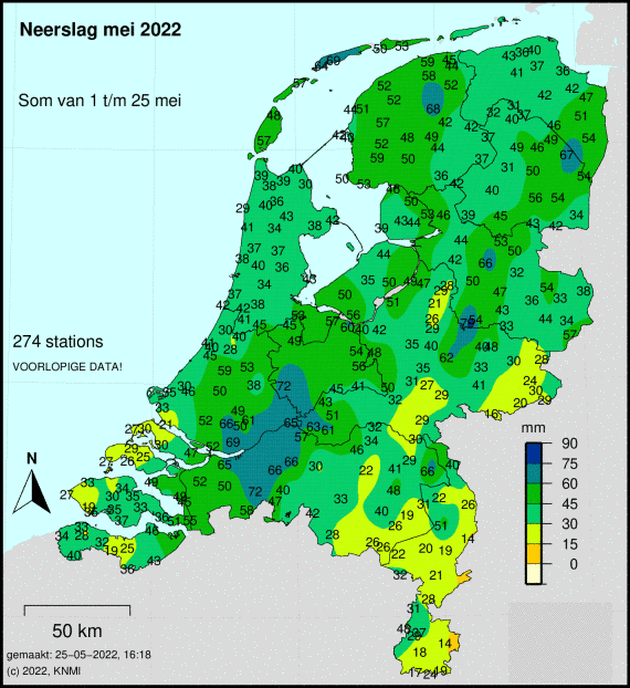 Volgens de weerstations van AgroExact die op de percelen staan, blijven de millimeters in sommige gebieden wat achter. Bij het Noord-Brabantse Eethen viel het meeste de afgelopen zeven dagen met 54,6 millimeter. In het zuiden van het land viel de neerslag wat tegen. In Eethen viel weliswaar de grootste hoeveelheid, maar bij telers in het zuidoosten en zuidwesten van het land was de neerslag maar gering. Daar zagen ze graag wat meer.