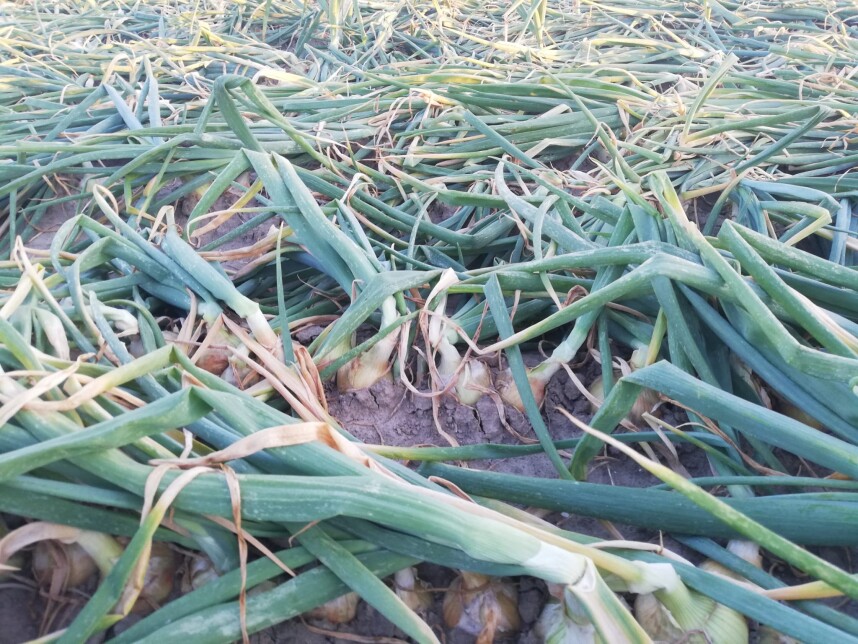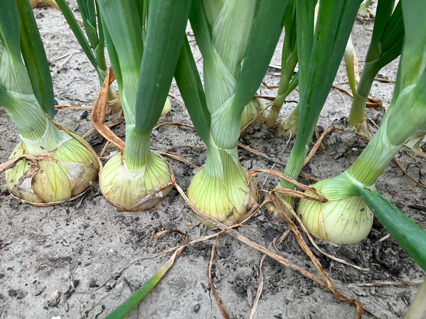 In het zuiden van Nederland zijn de zaaiuien al enige tijd gestreken. Bij Klaasjan Boer in Kortgene (Zeeland) sterft het perceel langzaam af en staat geen ui meer overeind. Datzelfde geldt voor Jillissen in Oeffelt (Noord-Brabant). Het perceel sterft hard af en hij verwacht dat de andere percelen die net begonnen zijn met strijken een klap krijgen van de hitte.