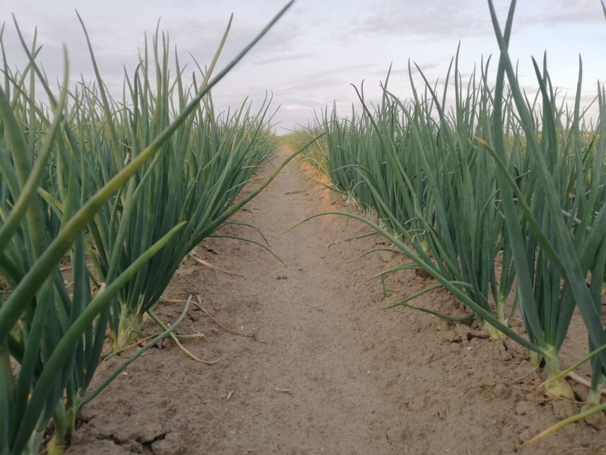 De zaaiuien hebben de groei te pakken, maar in het zuiden blijft de droogte de groei parten spelen. Het aantal pijpen op de planten valt nog mee, maar de lengte en de massa van het loof is wel fors minder vergeleken met andere jaren. Ook neemt de tripsdruk toe.