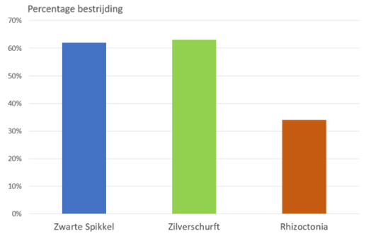 Een mooie afname van ruim 60% voor zilverschurft en zwarte spikkel en 34% afname van rhizoctonia wanneer Serenade is toegepast in de veur tijdens het poten.