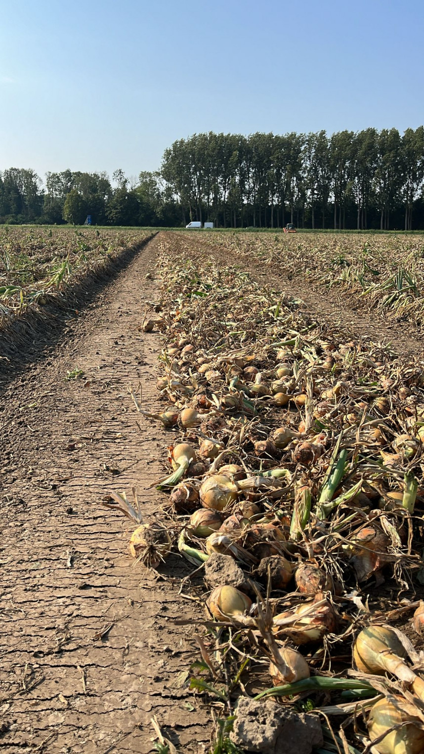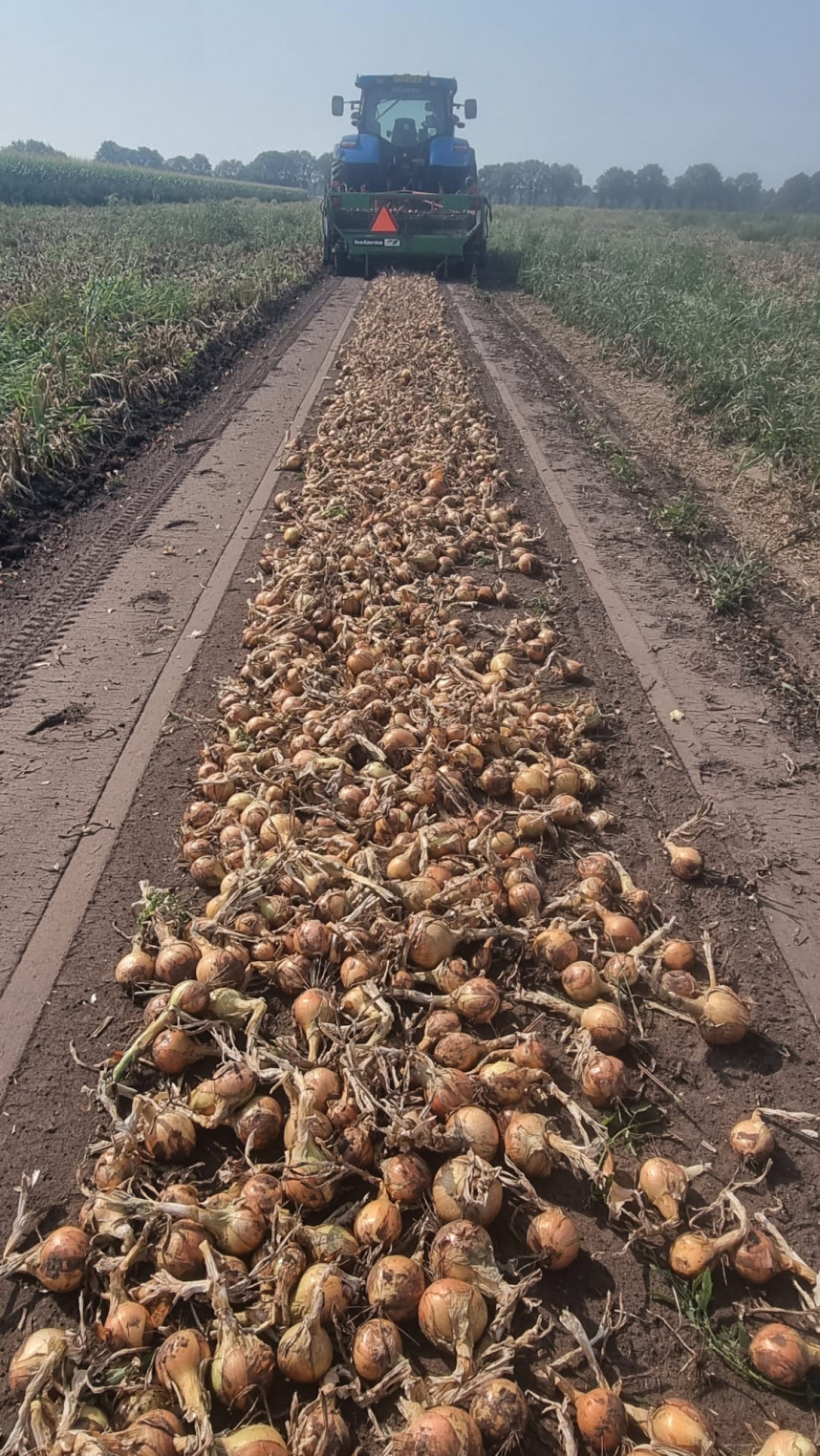 De neerslag was deze week voor sommige telers een spelbreker met de uienoogst, terwijl die voor anderen erg welkom was. De grond was alweer te hard was om goed uien te rooien zonder beschadiging. Bij een rondgang bij de uientelers van de Boerenbusiness Gewastour blijkt dat er tot begin deze week, voordat de neerslag begon, nog best wat uien zijn gerooid. Inmiddels hebben 5 van de 10 deelnemende telers de uien gerooid. De eerste partij ligt zelfs al achter de planken bij David de Wit in het Noord-Brabantse Lepelstraat.