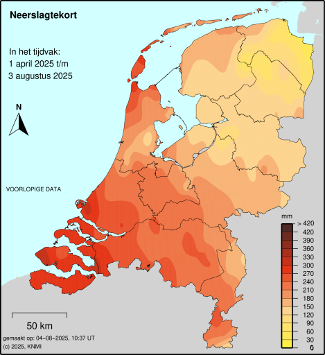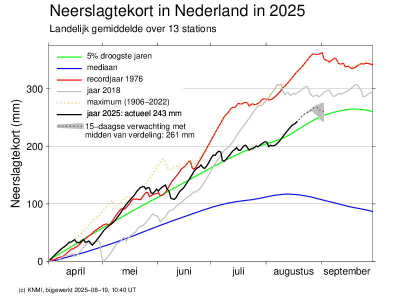 Het jaar 2025 komt steeds meer boven de lijn van 5% droogste jaren uit