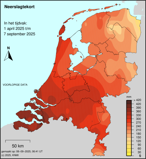 Het seizoen begon eigenlijk al afgelopen winter, die gemiddeld droog verliep met enkele (kleine) vorstperikelen. Daardoor startte het huidige groeiseizoen met een veel betere bodemstructuur dan vorig jaar, toen de winter juist uitzonderlijk nat was. Er is wel een duidelijke parallel te trekken met vorig jaar: het weerbeeld vanaf het voorjaar bleef in beide jaren nagenoeg onveranderd. In 2024 zette het natte voorjaar zich door richting de zomer, terwijl in 2025 juist het droge voorjaar aanhield tot in de zomer, al waren de verschillen tussen Noord- en Zuid-Nederland wel erg groot.