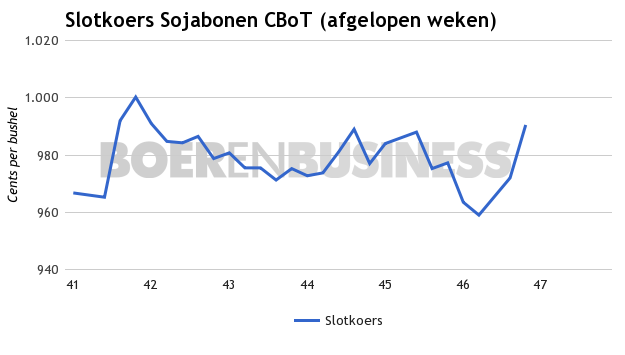 Sojabonen maakten vorige week een fikse prijsspurt door. In de nachtbeurs van maandag 20 november werd een deel van de winst alweer ingeleverd.