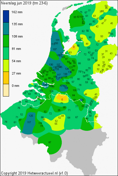 De verwachtingen zijn dat de hitte in heel Europa kan aanhouden. Voor Nederland zijn de berichten inmiddels iets afgezwakt. Vanaf woensdag 26 juni wordt het iets koeler, al klimt de temperatuur richting het weekeinde weer naar 30 graden Celsius. Voor volgende week wordt een gematigder, maar droger, weertype verwacht. Vooral in het zuid- en noordwesten en Flevoland viel in juni een flinke hoeveelheid neerslag (ruim boven de 100 millimeter). In het oosten viel minder regen en daar draaien de haspels dan ook alweer volop.