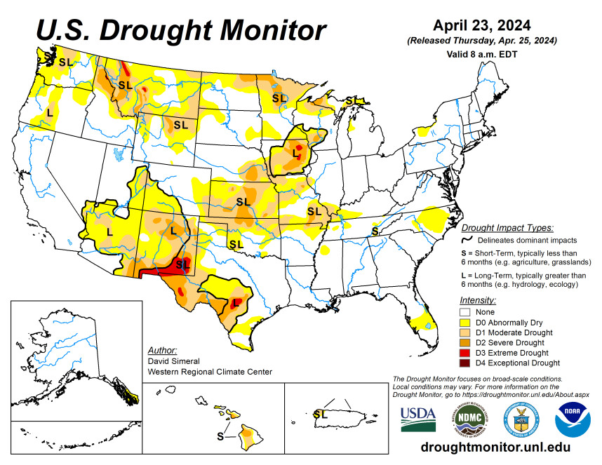 In de VS blijft het weer ook gesprek van de dag in de graanhandel. In de cornbelt is de afgelopen dagen regen gevallen. Dat is niet voldoende de droogteproblemen op te lossen, maar wel voldoende om het vocht in de toplaag wat aan te vullen en de vroeg gezaaide maïs aan de gang te helpen. Zorgelijker is volgens verschillende analisten het gebrek aan neerslag in Kansas en Oklahoma. Voor begin volgende week worden buien voorspeld in het centrale en westelijke deel van de cornbelt en het oosten van de wheatbelt. Maar of graantelers daar vrolijk van worden, is een tweede. De Amerikaanse weerdienst spreek over omgerekend 50 tot 75 millimeter water in korte tijd en waarschuwt voor wateroverlast en lokale overstromingen.