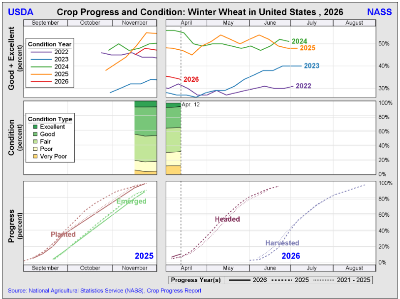 In de VS werkt het weer voor de tarwetelers op de zuidelijke Wheatbelt ook niet erg mee. Het oostelijke deel van staten als Kansas en Oklahoma hebben regen gehad, maar verder naar het westen is het grotendeels droog gebleven. De conditie van de wintertarwe in de VS is er iets op achteruit gegaan, zo blijkt het Crop Progress-rapport van deze week. 34% van het areaal krijgt de rating goed of excellent tegen 36% vorige week. Dat is wel even wennen na twee relatief goede tarweseizoenen. In 2022 en 2023 stond de wintertarwe er minder goed op. Qua groei loopt de wintertarwe iets voor, met deze week 11% in de aar tegen 7% in het vijfjarig gemiddelde.