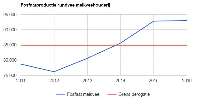Feit is wel dat hoe langer er gewacht wordt, hoe korter de tijd wordt om de daling te behalen. Daarbij is het ook nog zo dat hoe later er wordt ingegrepen, hoe meer er gedaan moet worden om te voorkomen dat er meer fosfaat geproduceerd wordt dan de eis in de derogatie toestaat.