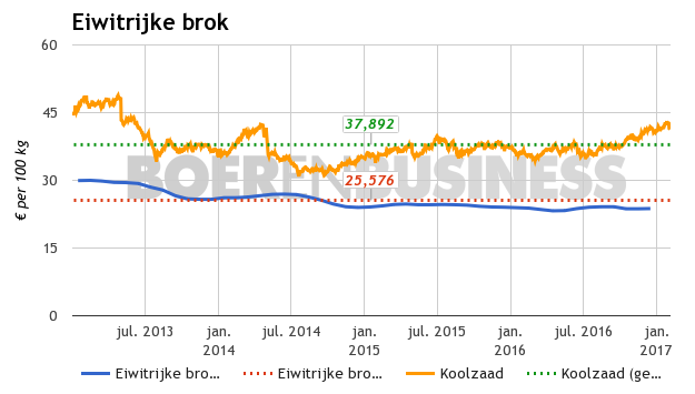 Door het streven om minder fosfor in voer te verwerken wordt de inzet van koolzaadschroot lastiger. Een product waarvan bekend is dat het een hogere fosfaatproductie aanjaagt. Sojaschroot is een duurdere eiwitleverancier, maar staat wel garant voor minder fosfaat. Allicht dat er meer grondstoffen zijn die in het kader van de fosfaatreductie lastiger in te zetten zijn en daardoor een prijsopdrijvend effect hebben. Een onderwerp wat heel 2017 actueel blijft.