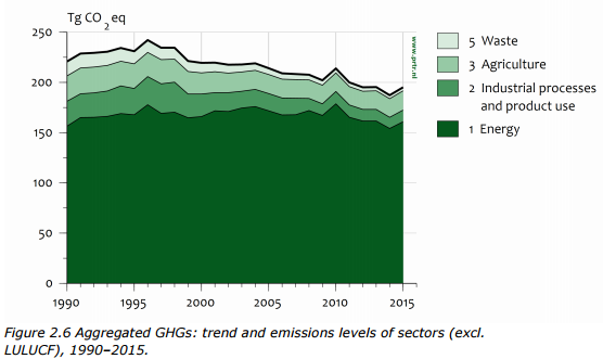 Het rapport komt net na de publicatie van de tussenstand in dit dossier van het RIVM (Rijksinstituut voor Volksgezondheid en Milieu). Die meldt dat over 2015 de uitstoot van broeikasgassen in Nederland met 4 procent toenam. Die stijging kwam vooral tot stand door de stijging in CO2-emissie als gevolg van een hogere elektriciteitsproductie in steenkolen gestookte elektriciteitscentrales. Door de koude winter is er meer brandstof verbruikt voor ruimteverwarming dan in 2014. In totaal komt de uitstoot over 2015 uit op 195,2 miljard kilogram CO2-equivalenten.