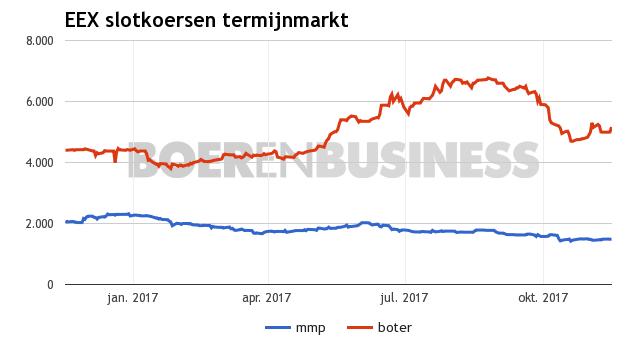 Voor de maanden november en december heeft de prijs nog potentie om weer aan te trekken. Dit omdat de prijs van boter weer een stijging laat zien.