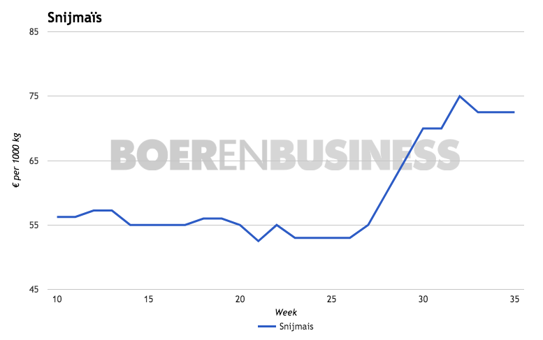 Er worden inmiddels meer prijzen genoemd voor snijmaïs van de nieuwe oogst. Er wordt gesproken over €1,90 tot €2 per procent droge stof of €60 tot €65 per ton franco boerderij. Echter, het grote kwaliteitsverschil in Nederland maakt het lastig om te beoordelen om welke kwaliteit het dan gaat. "De kwaliteit in het noorden van het land lijkt goed, maar in de Achterhoek heb ik ook veel mindere percelen gezien."