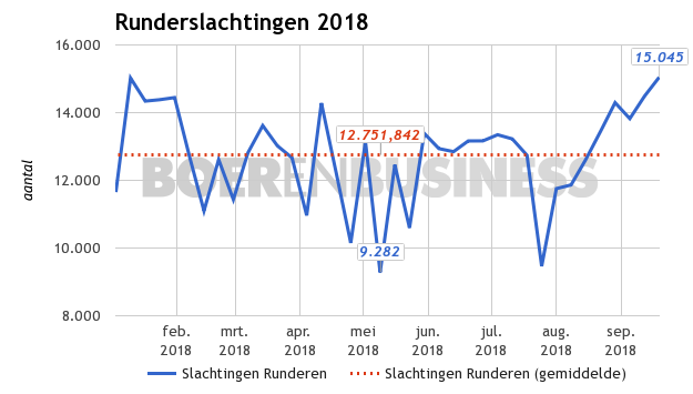 Daarom brengen melkveehouders de melkkoeien vaker naar de slacht, om op die manier de fosfaatproductie terug te schroeven. Handelaren laten weten dat afvoer van melkkoeien zich in veel gevallen beperkt tot een handjevol koeien. Oftewel: veel adressen die een paar koeien wegdoen. Het aanbod is zo groot dat slachterijen het aanbod van runderen wekelijks door moeten schuiven.