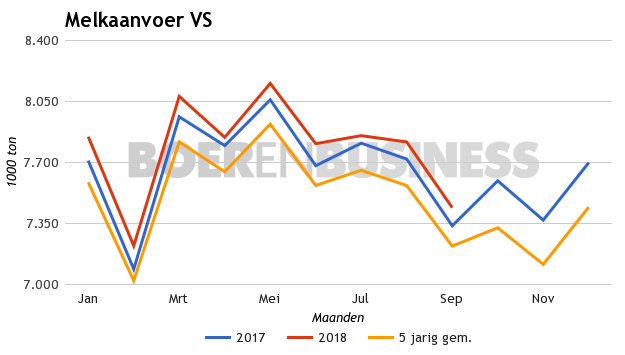 Over september komt de gemiddelde melkproductie per koe uit op 852 kilo melk, een toename van 22 kilo vergeleken met een jaar eerder. Met een hogere melkgift per koe proberen Amerikaanse melkveehouders de lage melkprijs te compenseren.