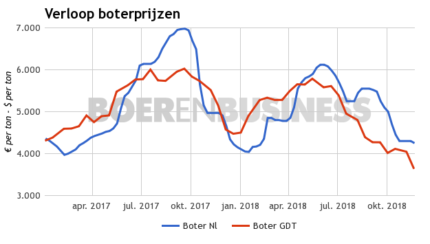 Tussen juni en september pakte de melkaanvoer in Nieuw-Zeeland circa 6% ruimer uit dan in dezelfde periode vorig jaar. De stijging komt door de voortvarende grasgroei, als gevolg van het natte weer. De ruime aanvoer in Nieuw-Zeeland kan de vetprijzen in het eerste helft van 2019 negatief beïnvloeden, gezien de 'kiwi's' dezelfde afzetmarkten bedienen als Europese zuivelexporteurs.