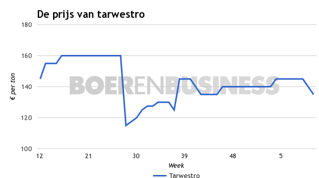 De stroprijs is niet de enige prijs die onder de druk gezwicht is, want ook de prijs voor bierbostel laat een daling zien. De prijs daalt deze week met €0,05 tot €2,55 per procent droge stof. Er is weinig vraag naar het product, terwijl het aanbod al een tijd stabiel is.