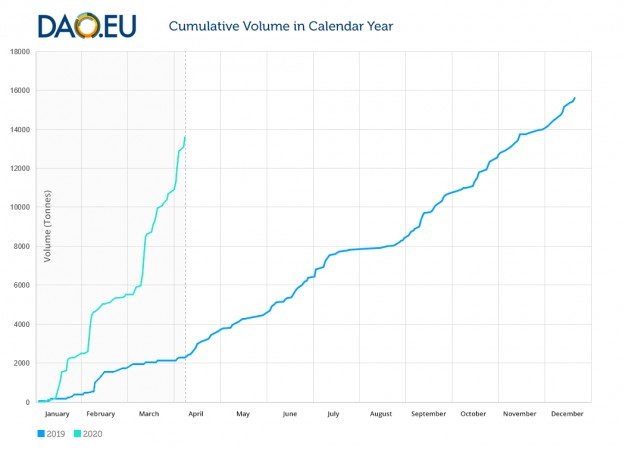 De verkopen van zuivelfabricaten via het digitale handelsplatform DAO.EU heeft in het eerste kwartaal van 2020 een vlucht genomen. De volatiele zuivelmarkt, vanwege de coronacrisis, werkt daarbij zeker niet tegen.
