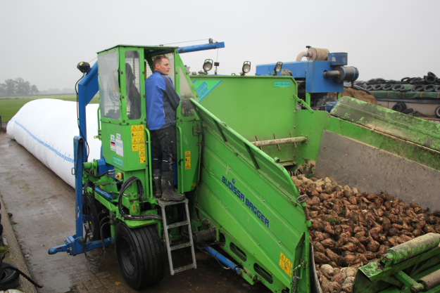 De voederbieten deden in 2014 hun intrede op het bedrijf van Pieter Karst. "We zijn een extensief bedrijf, dus ik zocht naast gras en maïs nog andere rendabele gewassen." In 2015 zaaide hij één hectare als proef, van alle 200 hectare voederbieten die er in Nederland te vinden waren. "De sleufsilo puilde uit." Inmiddels is het areaal bij Pieter Karst gegroeid naar 3 hectare. "Het vraagt een akkerbouwmatige aanpak," noemt hij als aandachtspunt. Jaarrond vers voeren is het mooist, omdat de bieten dan smakelijk zoet blijven. Echter, na 15 april mogen de bieten niet meer op één hoop liggen. "We versnipperen ze en slaan ze op in een plastic slurf," vertelt Pieter Karst. "Zo kunnen we de koeien elke dag voederbieten voeren."