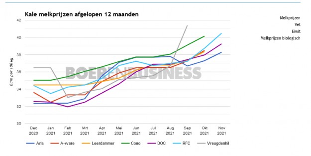 De voorschotmelkprijs van Cono Kaasmakers voor oktober gaat richting de €45,00 per 100 kilo. Het is de hoogste maandprijs voor gangbare melk tot nog toe. Het gaat wel om de maximale melkprijs, maar vrijwel alle leden beuren die.