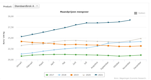 Zonder de ruwvoervoorraden uit 2020 waren de melkveehouders er dit jaar gemiddeld niets op vooruit gegaan ten opzichte van het jaar ervoor, zelfs ondanks de forse melkprijsstijgingen aan het einde van 2021. Over heel 2021 stijgen de melkprijzen met ongeveer 10%. De opbrengstprijs van afgevoerde koeien steeg overigens veel meer: 30%. De kalverprijs steeg nog harder. Deze prijzen tikken op het totale inkomen echter beperkt door.