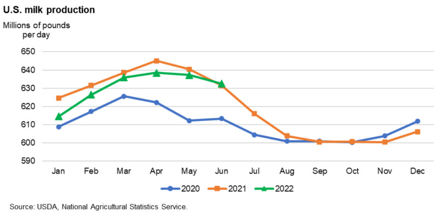 In mei bedroeg de zogeheten all milk price, de gemiddelde prijs voor alle melksoorten gecombineerd, US $27,30 per pound. Bij de huidige wisselkoers is dat ruwweg €60,00 per 100 kilo. Sinds mei is de prijs geleidelijk aan weer gezakt. Het Amerikaanse ministerie van landbouw (USDA) schat dat de gemiddelde melkprijs in de VS dit jaar uitkomt op $25,20 per pound, oftewel zo'n €55 per 100 kilo.