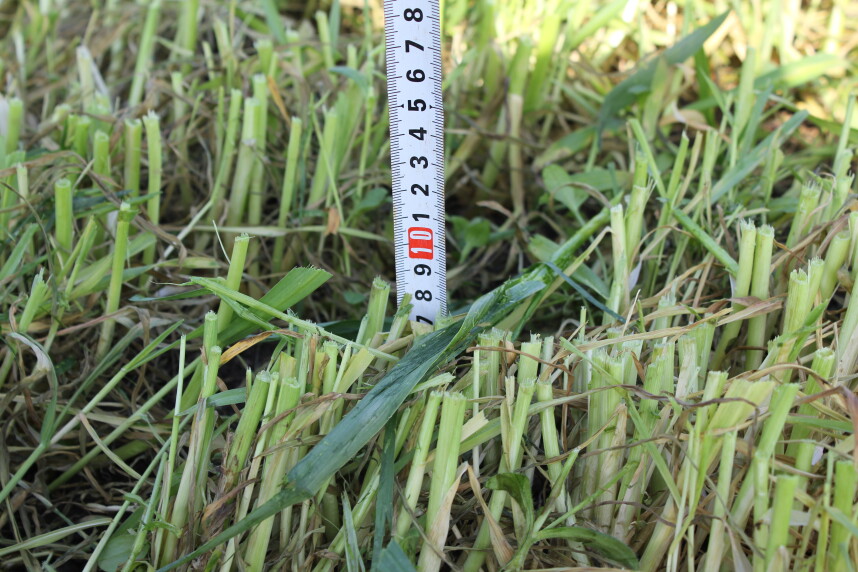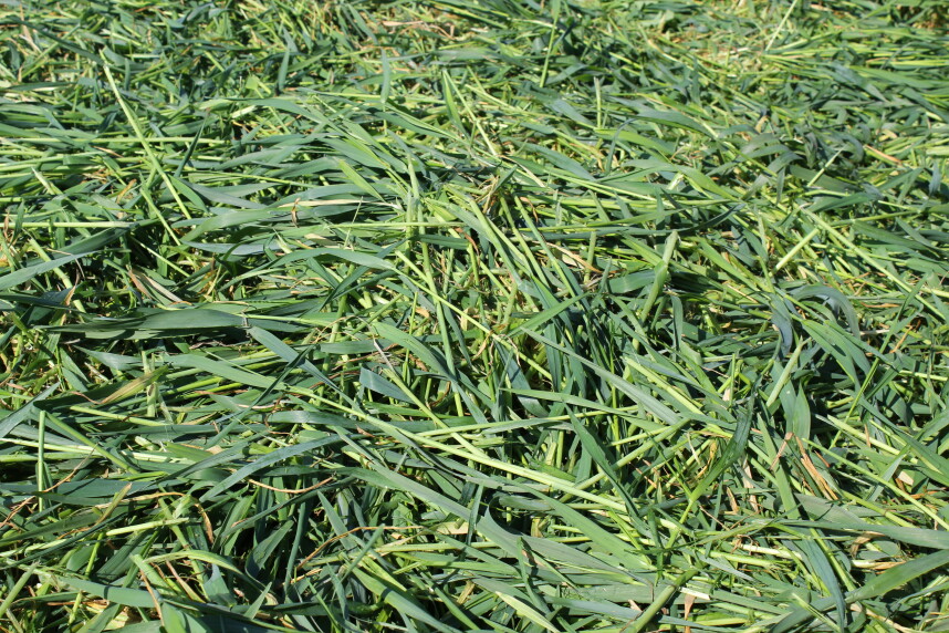 Bij het maaien is een maaihoogte van 8 à 10 centimeter gewenst. Door deze maaihoogte aan te houden wordt contaminatie met gronddeeltjes en daarmee kwaliteitsvermindering voorkomen. Bij het maaien ligt het drogestofpercentage rond de 20%. Kies voor maaien voor een optimale droging door het gewas het beste gekneusd en breed weg te leggen. Een drogingstijd van maximaal 48 uur is gewenst om het ideale drogestofpercentage van het geoogste product van 30% tot 35% te realiseren. De meest toegepaste manieren van oogsten zijn het hakselen of fijn gesneden persen in balen te persen en vervolgens te wikkelen. Bij een latere oogst richting eind april of begin mei neemt door toename van de gewasmassa de drogestofopbrengst verder toe, maar door verdunning het eiwitpercentage juist af. Ook met het oog op het zaaiklaar maken en het zaaien van de maïs is zo lang wachten niet wenselijk.
