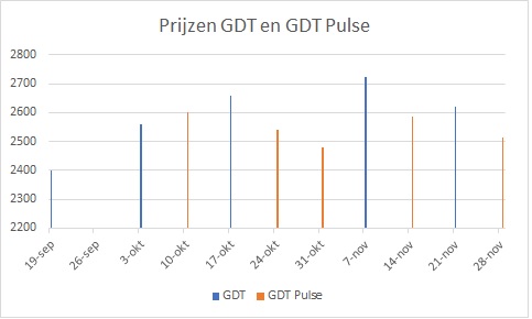 Met de GDT Pulse wordt evenwel een beperkter beeld gegeven van de melkpoedermarkt, want Europees en Amerikaans aanbod doet niet mee. Waarom wordt niet duidelijk. Wel duidelijk is uit vergelijkende cijfers dat de GDT Pulse tot nu toe gemiddeld lagere noteringen neerzet. Logisch misschien, maar het lijkt allemaal niet in het voordeel van de overige partijen die product aanbieden via het gewone GDT-platform.