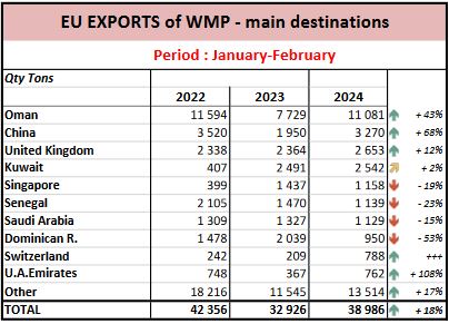 Hoewel relatief duur en ook vrij weinig verhandeld door handelshuizen, toch is volle melkpoeder nog altijd een niet te veronachtzamen product voor Europese en Nederlandse zuivelbedrijven. In de eerste twee maanden van dit jaar verkochten Nederlandse producenten ruim 19.000 ton vol poeder over de grens, wat ruim 1.000 ton meer is dan vorig jaar in dezelfde periode. De Europese export van volle melkpoeder verdwijnt voor een groot deel naar het Midden-Oosten.