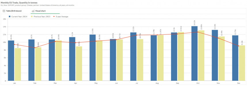 Vorig jaar voerde de VS 141.734 ton kaas in uit de EU, wat een recordvolume is. Dit bracht net iets minder dan €850 miljoen in het laatje. Ten opzichte van de totale kaasexport op de wereldmarkt is dit zo'n 10%. Nederland verkocht zo'n 18.500 ton naar de VS met een uitvoerwaarde van €120 miljoen, zo tonen cijfers van Eurostat aan. Daarmee is de VS een dankbare, maar geen cruciale afzetmarkt voor onze zuivelsector. De Nederlandse kaashandel en kaasindustrie reageren vooralsnog dan ook afwachtend op de 'stoere taal' vanuit Washington, zo laten bedrijven informeel weten. Er is simpelweg nog te weinig bekend. Overigens is foliekaas nu al belast. Binnen het quotum gaat het om een heffing van 10%, daarboven geldt een hoger tarief.