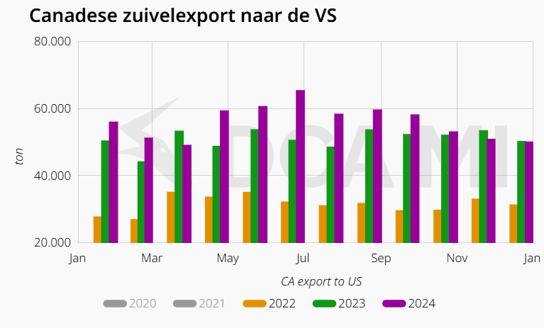 De aantijging van Trump klopt weliswaar, maar geldt alleen als de export oploopt tot een bepaald quotum. Dit is bedoeld om de eigen Canadese melkveehouderijsector te beschermen, zoals overigens Trump zelf is overeengekomen tijdens zijn eerste ambtstermijn toen het handelsakkoord USMCA met buurlanden Canada en Mexico werd uitonderhandeld. Dit is de opvolger van het vroegere NAFTA. Maar volgens Trump voldoet het huidige verdrag niet meer, zo liet hij in de campagne al meermaals weten. In de afgelopen jaren leidde het verdrag tot het nodige juridische getouwtrek op het gebied van zuivel. In 2024 ging er maandelijks circa 50.000 ton aan zuivelproducten vanuit Canada de Amerikaanse grens over.