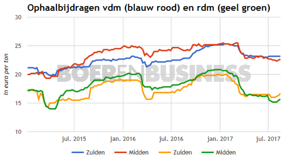 Voor melkveehouders is het een lastig te vatten verhaal. Althans, zo doet men voorkomen. Aangezien het nog geen 6 weken geleden is dat akkerbouwers moesten schooien om rundveedrijfmest. Echter, de melkveehouders waren niet thuis. Nu de balans wordt opgemaakt en het voor hen wenselijk is om met legere mestputten de winter in te gaan, krijgt men veelal nul op het rekest. Als gevolg op het minder makkelijk kunnen plaatsen van rundveedrijfmest, stijgen de ophaalbijdragen van deze mestsoort.