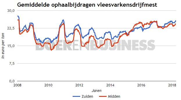 Oplossingen liggen echter ook niet voor het oprapen. Logischerwijs stijgen hierdoor de ophaalbijdragen, maar een oplossing is dat allerminst. De mestmarkt is daarmee een tikkende tijdbom.De gemiddelde ophaalbijdragen liggen hoger dan in de afgelopen periode.