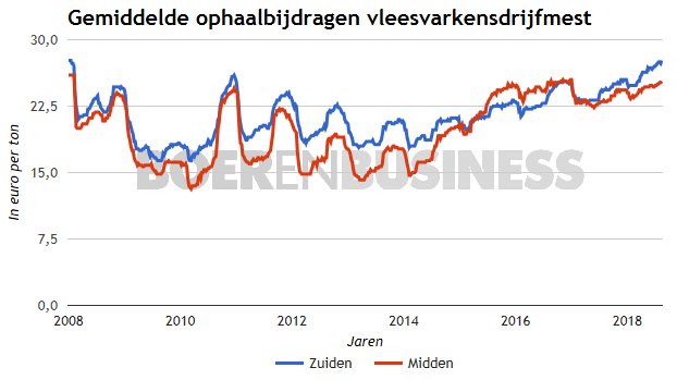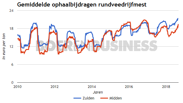 In de toelichting wordt ook duidelijk dat de ophaalbijdragen stijgen, doordat er gestunt wordt met bedragen die bij de ontvanger worden toe betaald. Op die manier wordt alsnog geprobeerd een voet tussen de deur bij de akkerbouwer te krijgen en auto’s en personeel aan het werk te houden. Dit komt deze week met name tot uiting bij de ophaalbijdragen van rundveedrijfmest.