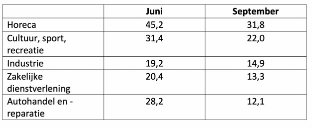 Het CBS publiceerde deze week de resultaten van een ad hoc enquête die onder andere informeert naar hoe ondernemers hun overlevingskansen inschatten als de coronacrisis voortduurt. Ik vond het interessant en bemoedigend dat het percentage ondernemers dat denkt in dat geval slechts maximaal 12 maanden te kunnen overleven, tussen juni en september is afgenomen. Er zijn natuurlijk grote verschillen tussen sectoren, maar de vermindering van het pessimisme is in alle sectoren geregistreerd. Het absolute niveau blijft uiteraard schrikbarend hoog.