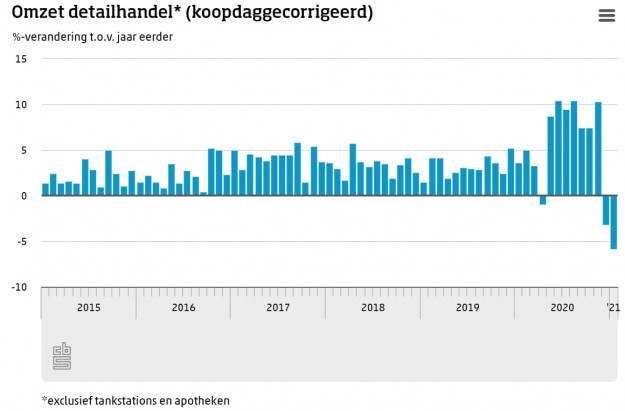Nederlandse detailhandelsomzetten geschaad door strenge lockdown