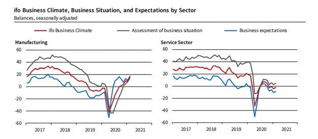 Hoewel de regering deze week besloot tot enige versoepeling van de regels, lijkt een forse verdere versoepeling nog een poos weg. Inmiddels worden de effecten van de strenge lockdown op de economie duidelijk. Het producentenvertrouwen in de industrie zwakte in februari iets af: 0,1 tegen 0.6 in januari en een langjarig gemiddelde van 0.2. De industrie profiteert duidelijk nog van het herstel van de wereldeconomie.