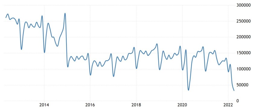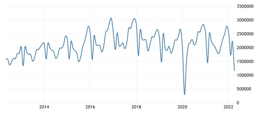 China is gedeeltelijk in lockdown en dat begint in de economische statistieken tot uiting te komen. Productie en transport worden geraakt. In april lag de waarde van de export nog maar 3,8% hoger dan een jaar eerder. In maart was dat nog 14,7%. Het kan niet anders dan dat wij dit spoedig zullen merken in de vorm van minder leveranties van goederen uit China. Dat zal de productie bij ons niet vooruithelpen. Dat veel Chinezen noodgedwongen thuis zitten, heeft ook zijn weerslag op de bestedingen. Zo waren de Chinese autoverkopen in april ruim 47% lager dan een jaar geleden.