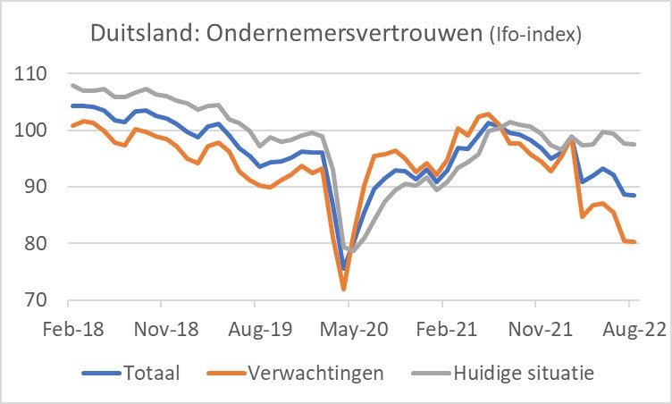 Iets beter verging het de Duitse Ifo-index, die al veel langer dan S&P Global het Duitse ondernemersvertrouwen meet. De Ifo-index was al eerder sterk teruggevallen en verloor in augustus opnieuw enig terrein, maar de schade bleef beperkt.