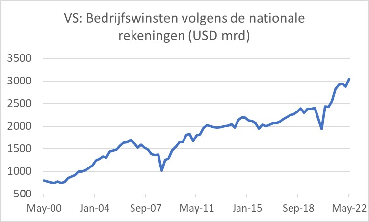 Bij de publicatie van de eerste herziening van de Amerikaanse BBP-kwartaalcijfers worden ook de eerste voorlopige cijfers over bedrijfswinsten gepubliceerd. Dit betreft het totale bedrijfsleven, dus ook het niet-beursgenoteerde bedrijfsleven. Ik volg deze winsten uit de nationale rekeningen als een tegenhanger voor wat bedrijven zelf rapporteren in het openbaar. De ontwikkeling van bedrijfswinsten is mijns inziens een enorm onderschatte conjunctuurindicator. Of je het nou leuk vindt of niet, zonder bedrijfswinsten kan de economie niet draaien. Het goede nieuws is dat het in het tweede kwartaal goed is gegaan met de Amerikaanse bedrijfswinsten. Ze lagen ruim 8% hoger dan een jaar eerder en ruim 6% hoger dan in het eerste kwartaal.