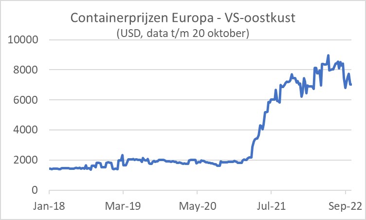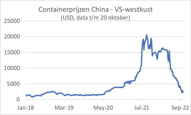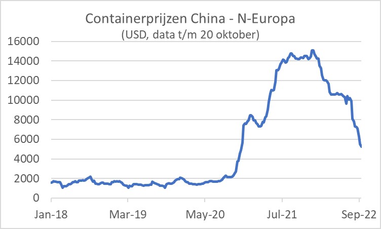 Of de mondiale economie, of misschien alleen de Europese economie in een recessie belandt, is deze week niet veel duidelijker geworden. Ik blijf daarover pessimistisch. De uitholling van de koopkracht door de hoge inflatie is dusdanig dat het niet anders kan dat de consumptieve bestedingen in Europa een veer zullen moeten laten. De gestegen energieprijzen eisen ook hun tol aan de productiekant van de economie. Als de inflatie en de energieprijzen in het bijzonder de Europese conjunctuur er niet onder krijgen, dan zal de klap die wordt uitgedeeld door de hogere rente dat mogelijk wel doen. Natuurlijk, er is een heel redelijk momentum, de gasprijs daalt inmiddels, de logistieke verstoringen verminderen (al lijken de intercontinentale vrachtprijzen voor Europa veel minder te dalen dan voor de VS), mensen hebben nog altijd spaargeld om uit te putten en de steunpakketten zullen hun werk doen: steunen.