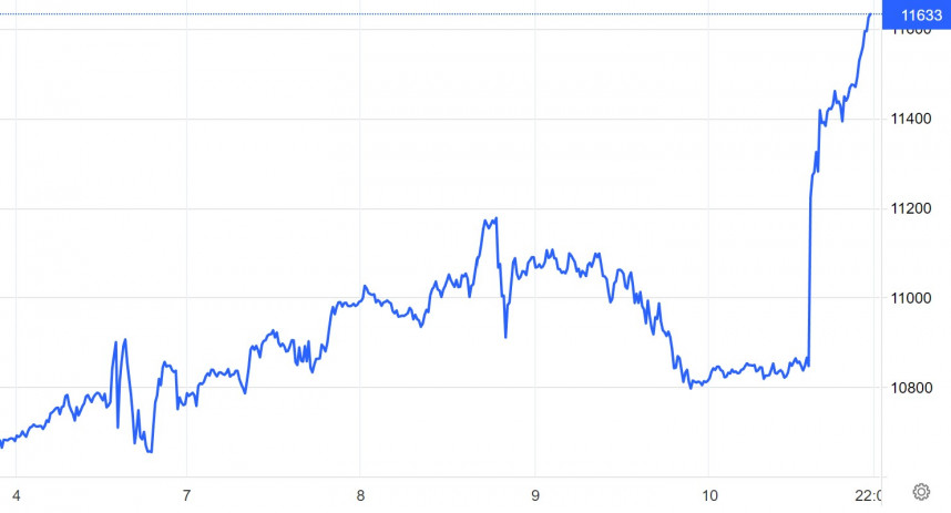 Het tweede plaatje laat de koers van de Nasdaq zien. De aandelenmarkten hebben een slecht jaar doordat de rente zo fors is gestegen en er wellicht een recessie aankomt. Aan de Nasdaq zijn vooral 'groeiaandelen' genoteerd en die zijn meer gevoelig voor de rente dan andere aandelen. De grafiek laat zien dat de Nasdaq na de publicatie van de inflatiecijfers maar liefst 7,5% steeg.