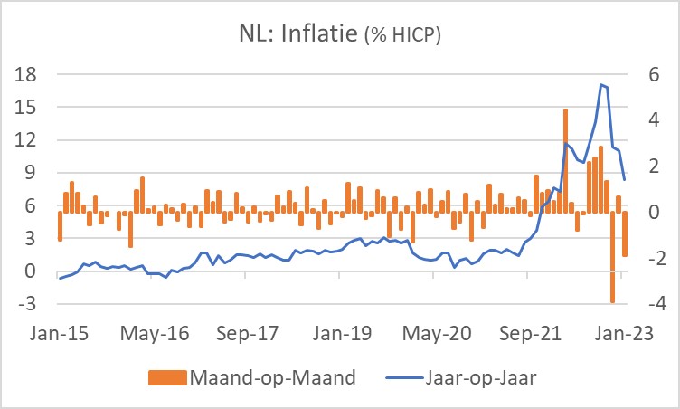 Het mes snijdt aan twee kanten. De snel gedaalde gasprijs trekt de inflatie behoorlijk naar beneden. De inkomens ontwikkelen zich juist positief dit jaar. De regering heeft immers naast het energieprijsplafond diverse koopkrachtondersteunende maatregelen genomen. Ook de loonstijging is danig versneld in reactie op de eerder opgelopen inflatie en vergeet de stijging van het minimumloon niet. Het kan zomaar zijn dat de koopkracht dit jaar veel meer stijgt dan het CPB nog maar een paar weken geleden berekende.
