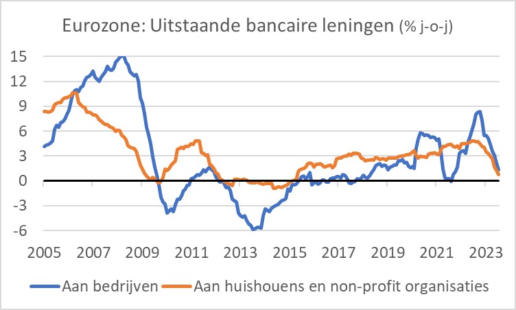 De groei van het uitstaande bancaire kredietvolume in de eurozone is de laatste tijd behoorlijk gedaald. Dat is geen goed teken. Evenmin is een goed teken dat de geldhoeveelheid M1 snel krimpt.