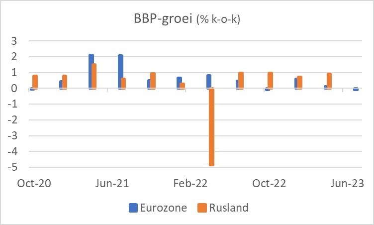 Tot dusver is het beeld dat de Russische economie een klap kreeg toen de oorlog uitbrak, maar dat de weg omhoog weer snel hervonden werd. Dat wil natuurlijk niet zeggen dat het allemaal probleemloos gaat in de Russische economie.