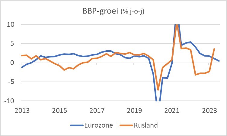 De cijfers laten zien dat de Russische economie een klap kreeg na het uitbreken van de oorlog, maar dat inmiddels sprake is van een opmerkelijk herstel. Probleemloos is het echter niet. De inflatie loopt weer op. Daarnaast is de economie nog steeds bezig met een het omleggen van de export van olie en gas van het westen naar het oosten. Men komt arbeidskrachten tekort, mede doordat mensen het leger in moeten of het land ontvluchten. En de overheidsuitgaven overstijgen de inkomsten. Toch moet je concluderen dat de klap die onze sancties aan de Russische economie hebben uitgedeeld veel minder zwaar is dan we hadden gehoopt. Of de effecten van onze sancties op langere termijn groter zullen zijn is niet te zeggen.